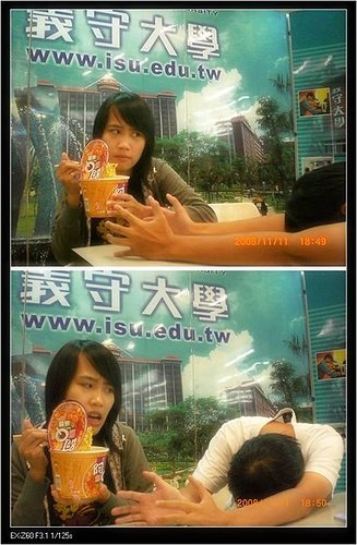 晚餐正在享用香噴噴阿Q桶麵時,有人想搶去吃:@ 這種事情當然不允許:)