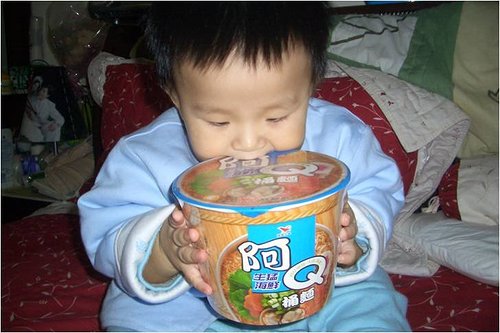我平常只吃ㄋㄟㄋㄟ,不過看到阿Q桶麵,想都不想就喀下去了!