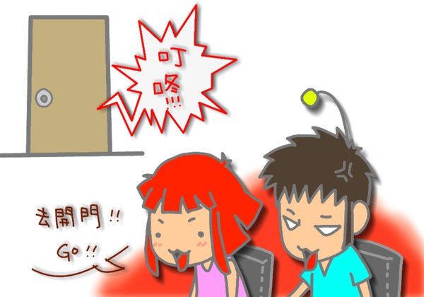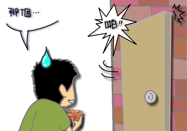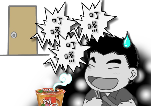 就在他拿起筷子準備好好享受這碗阿Q桶麵的這個時候,可愛又清脆的門鈴響了!